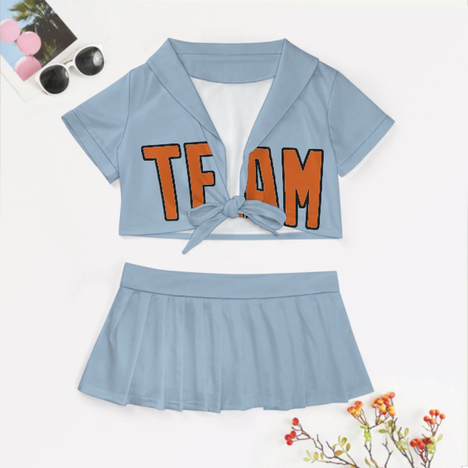 Maßgeschneidertes Hellblau Orange Cheerleader Outfit Set