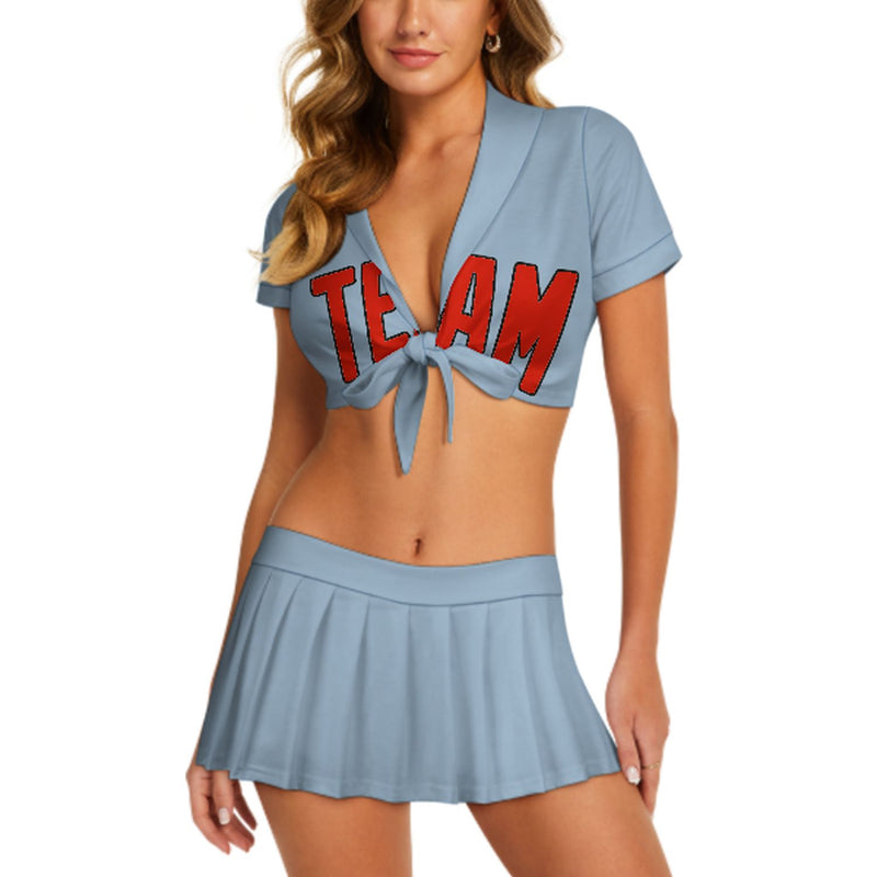 Maßgeschneidertes Hellblau Orangerot Cheerleader Outfit Set
