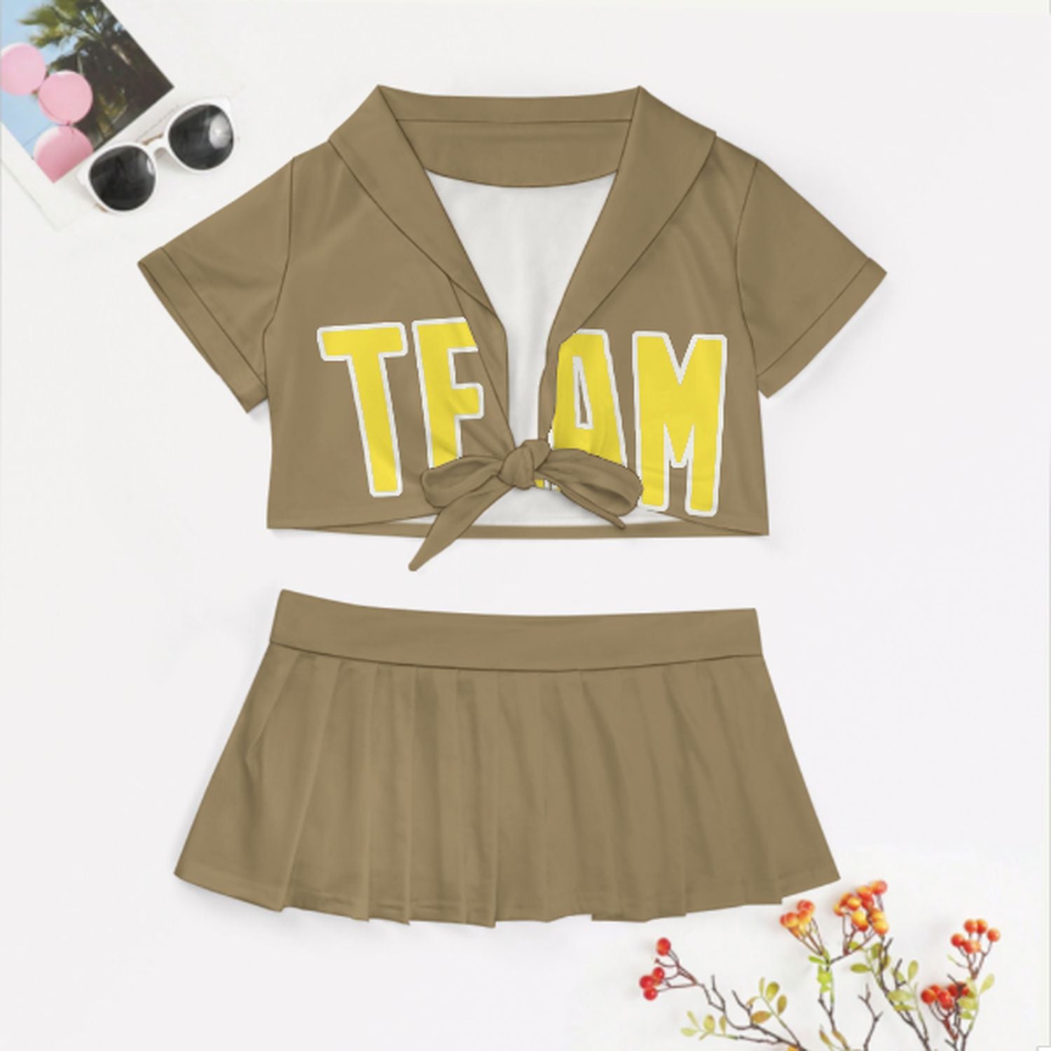 Maßgeschneidertes Hellkhaki Blassgelb Cheerleader Outfit Set