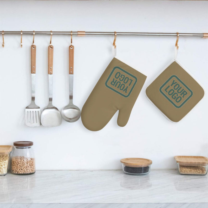 Maßgeschneidertes Hellkhaki Blaugrün Topfhandschuh Set – 2-teilig