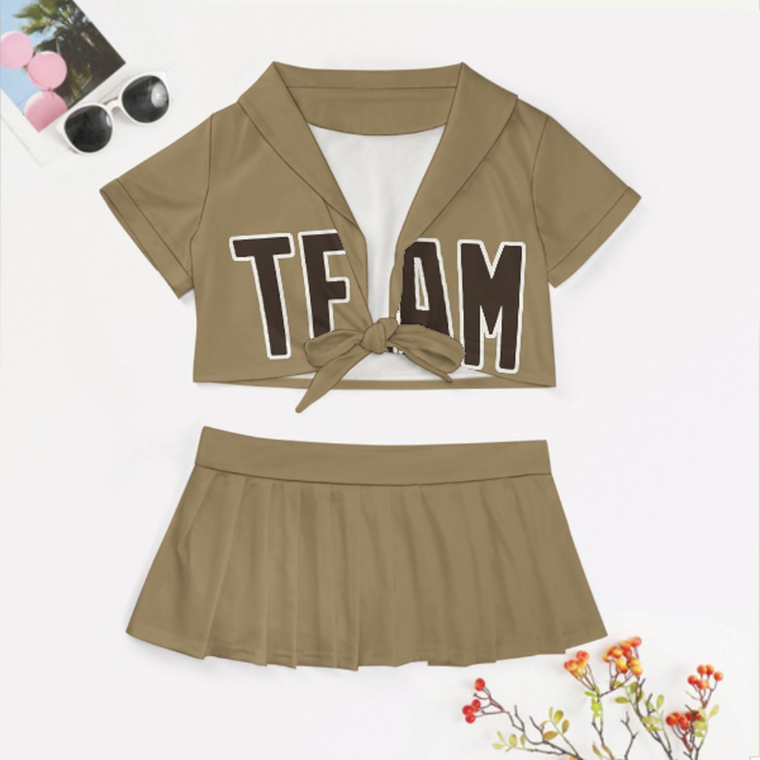Maßgeschneidertes Hellkhaki Braun Cheerleader Outfit Set