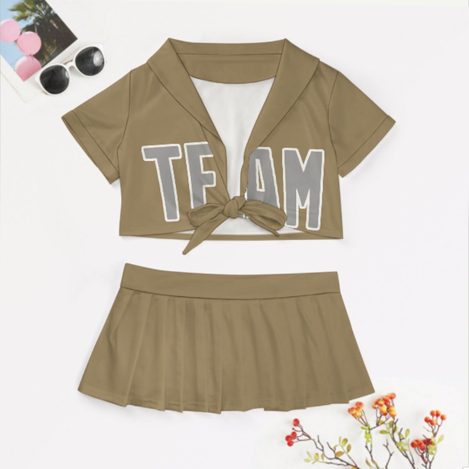 Maßgeschneidertes Hellkhaki Grau Cheerleader Outfit Set