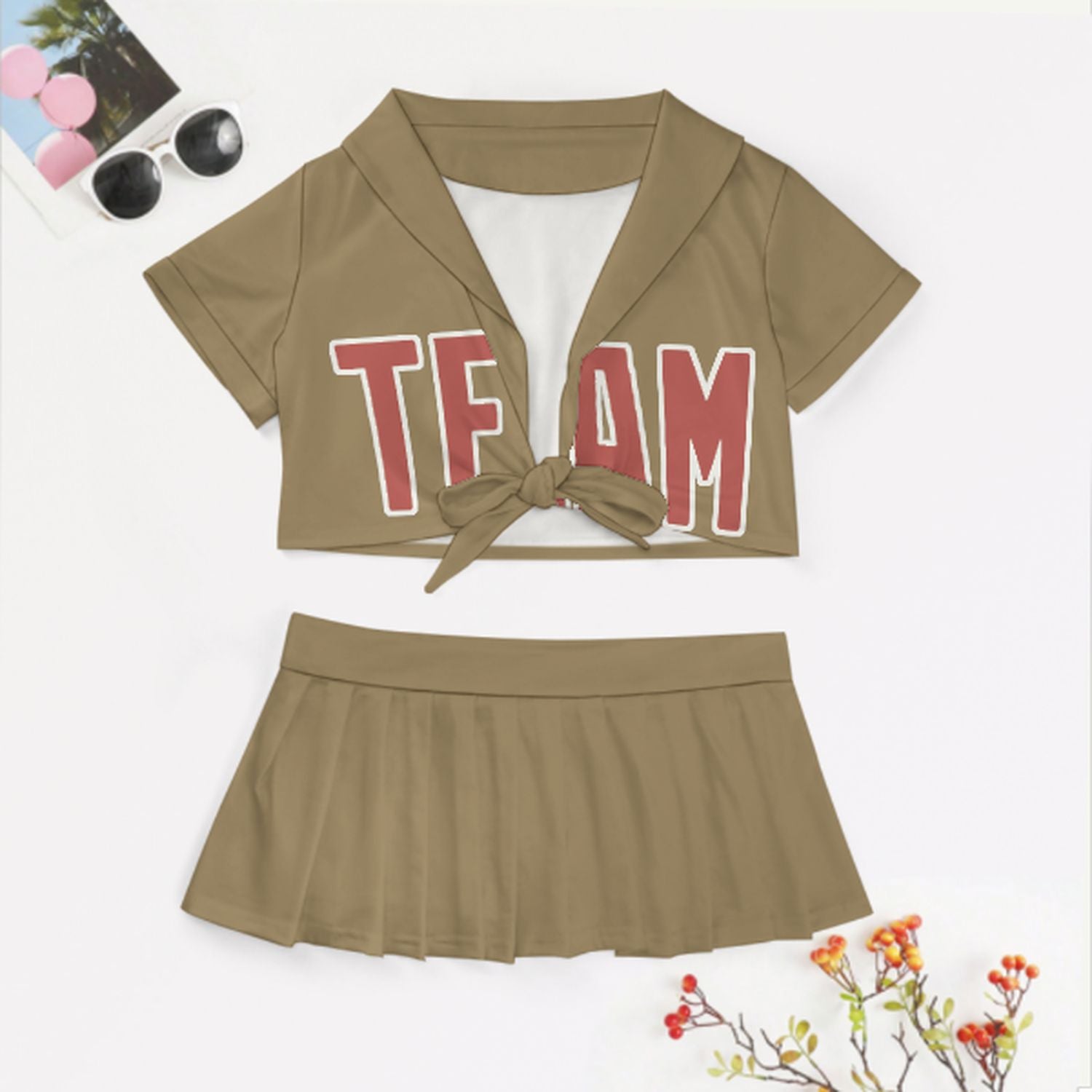 Maßgeschneidertes Hellkhaki Kupferrose Cheerleader Outfit Set