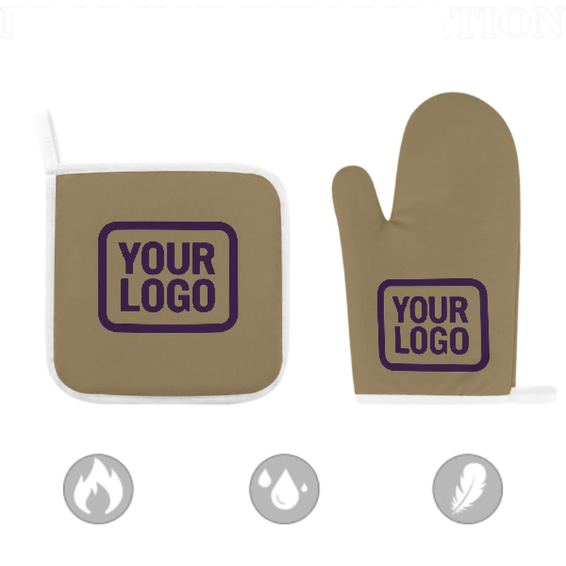 Ein stilvolles, hitzebeständiges 2-teiliges Topfhandschuh-Set aus robustem Polyestergewebe, ideal für Sicherheit und Komfort beim Kochen und Backen.
