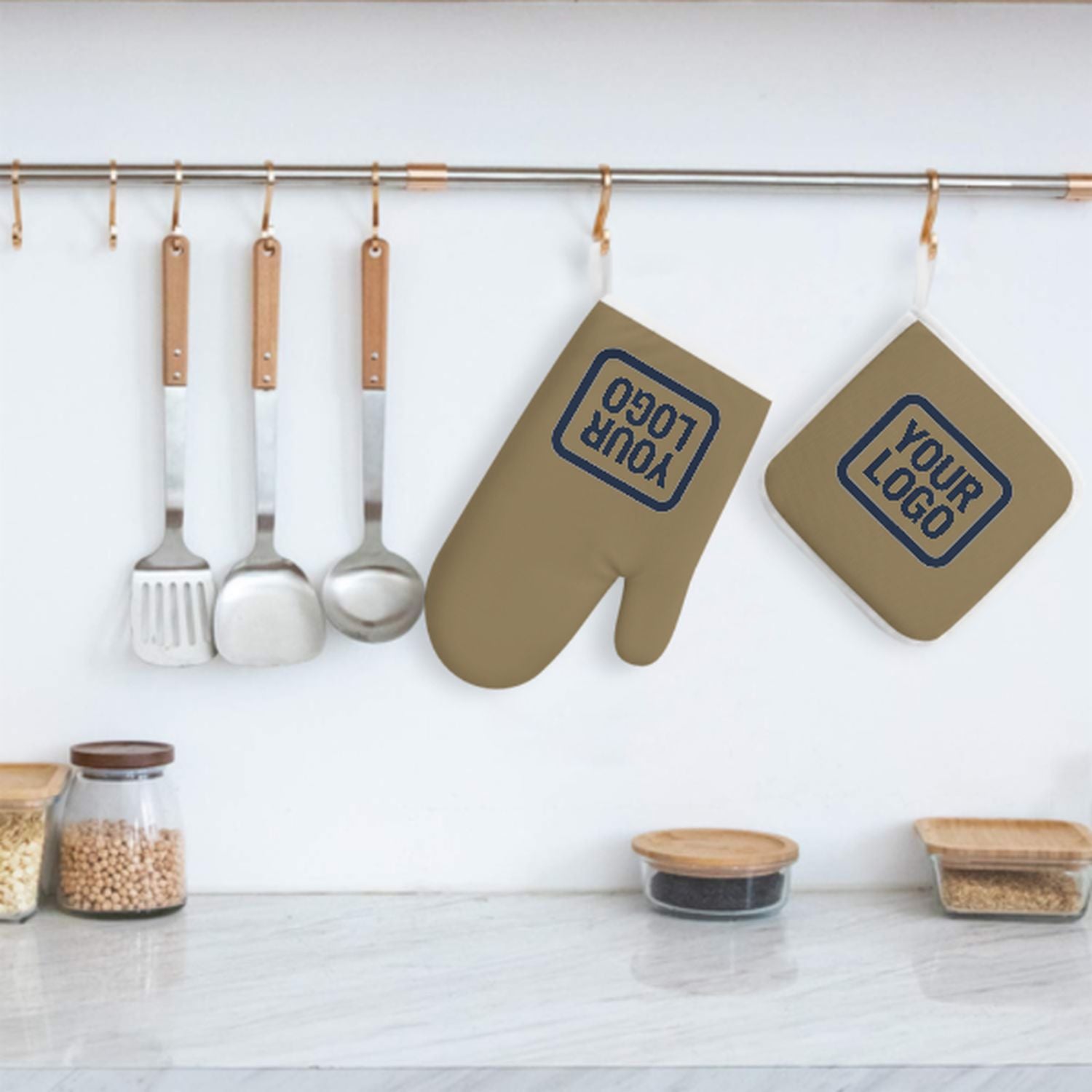 Maßgeschneidertes Hellkhaki Marineblau Topfhandschuh Set – 2-teilig
