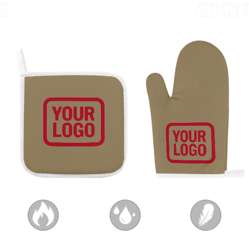 Maßgeschneidertes Hellkhaki Rot Topfhandschuh Set – 2-teilig