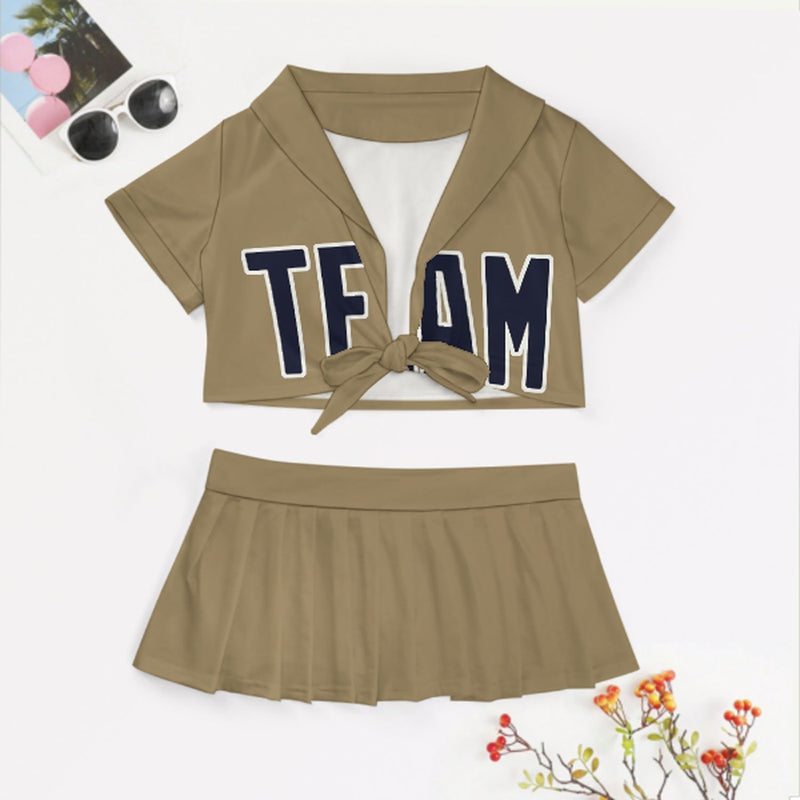 Maßgeschneidertes Hellkhaki Stahlblau Cheerleader Outfit Set