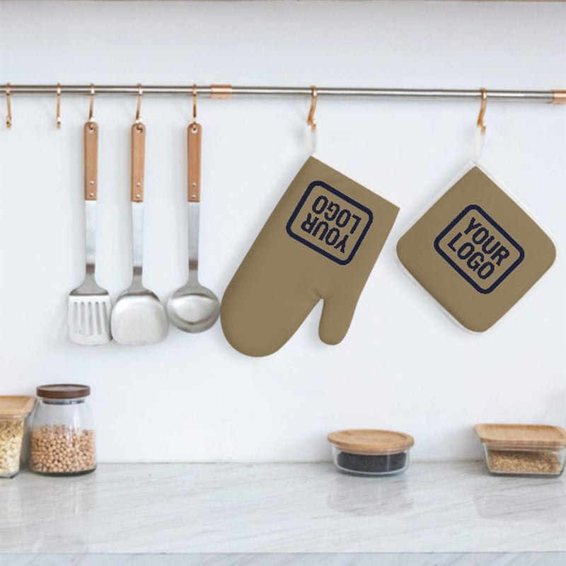 Maßgeschneidertes Hellkhaki Stahlblau Topfhandschuh Set – 2-teilig