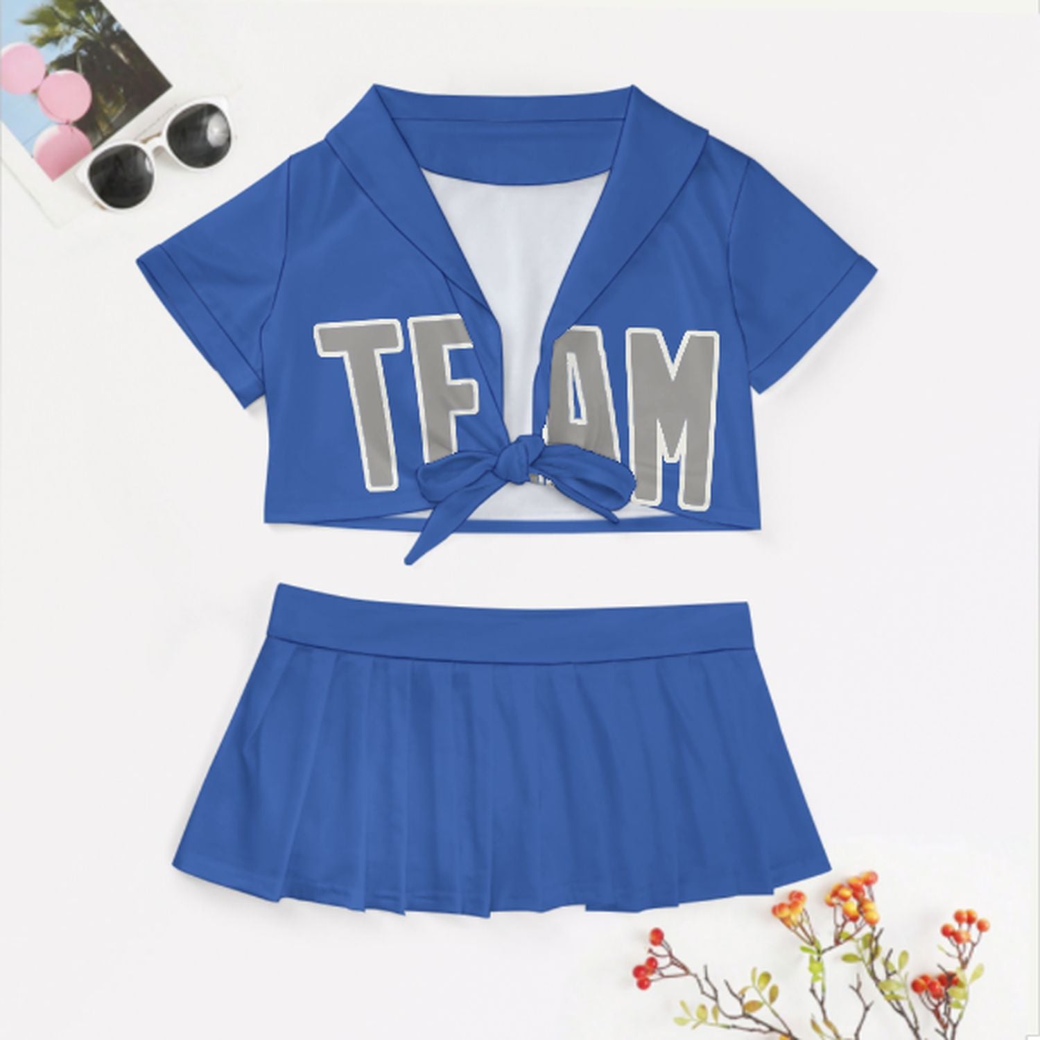 Sportliches und feminines Cheerleader Outfit Set aus atmungsaktivem Polyester mit figurbetontem Schnitt, ideal für Auftritte, Partys und Geschenke.