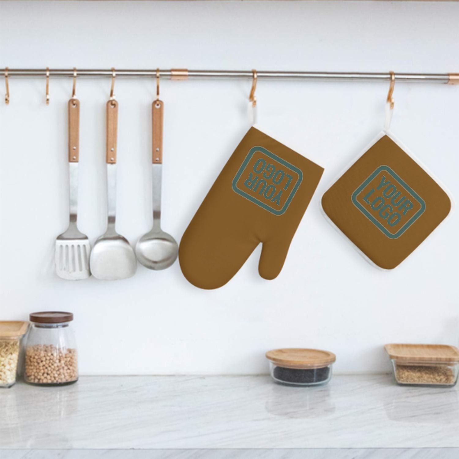 Maßgeschneidertes Khaki Blaugrün Topfhandschuh Set – 2-teilig