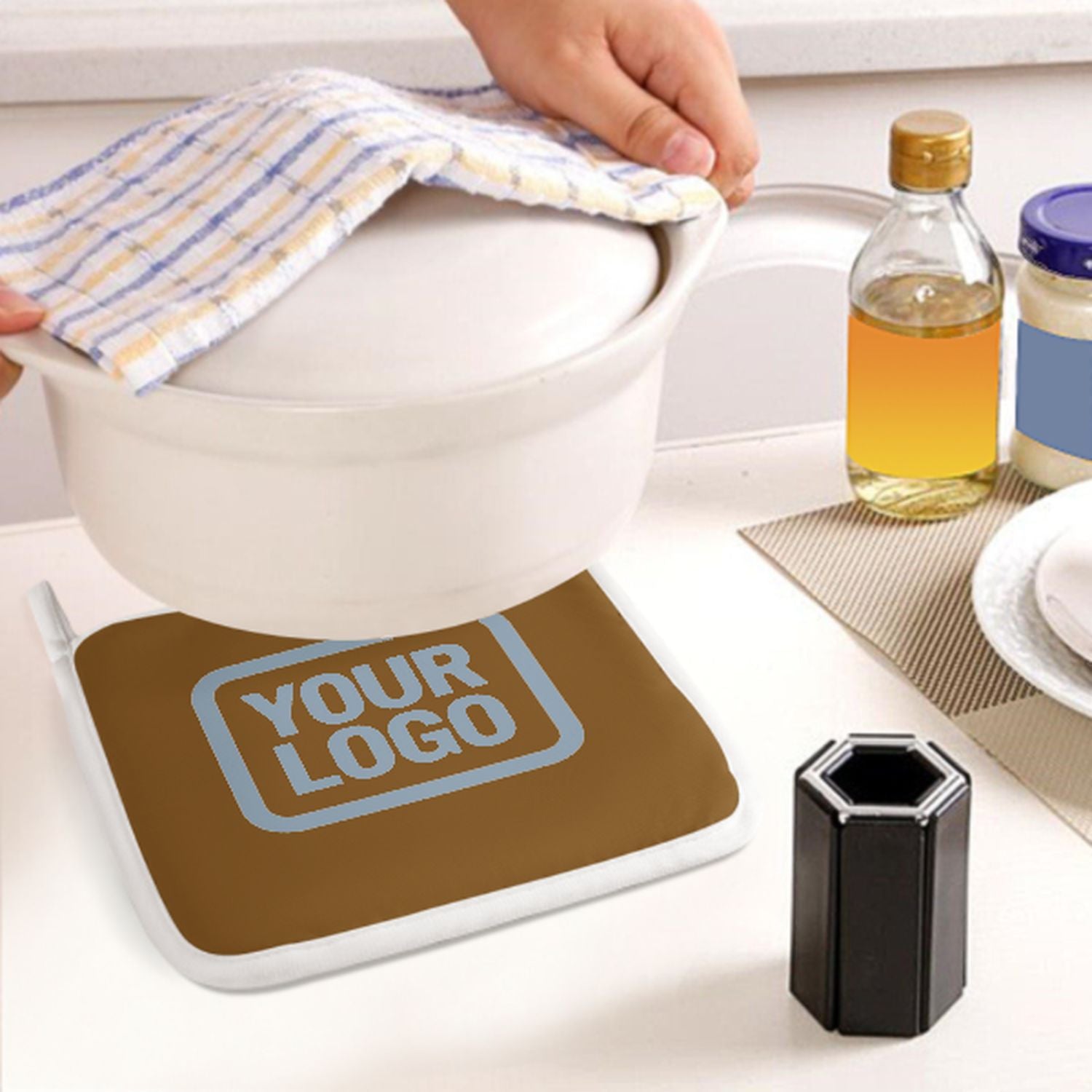 Maßgeschneidertes Khaki Hellblau Topfhandschuh Set – 2-teilig