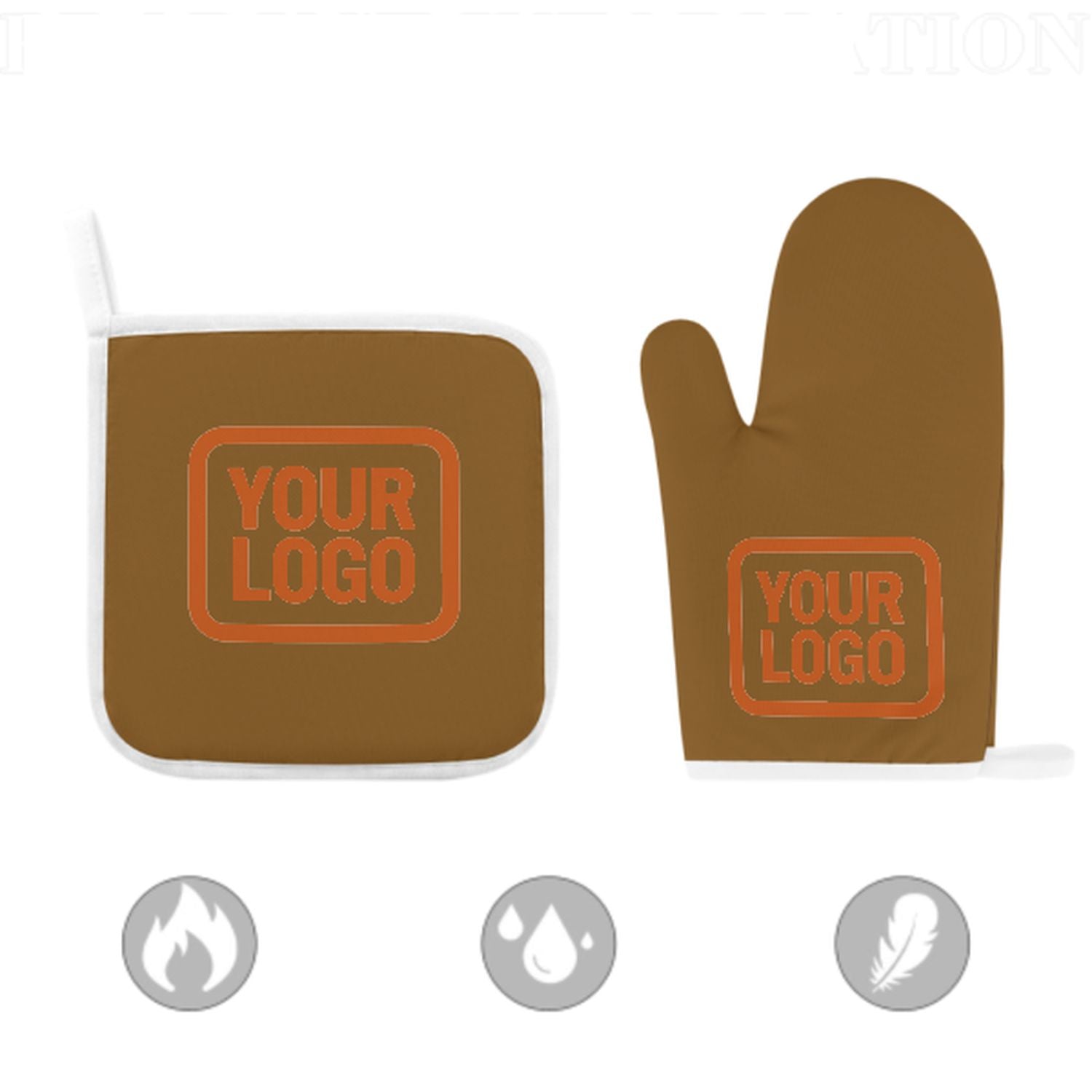 Maßgeschneidertes Khaki Orange Topfhandschuh Set – 2-teilig