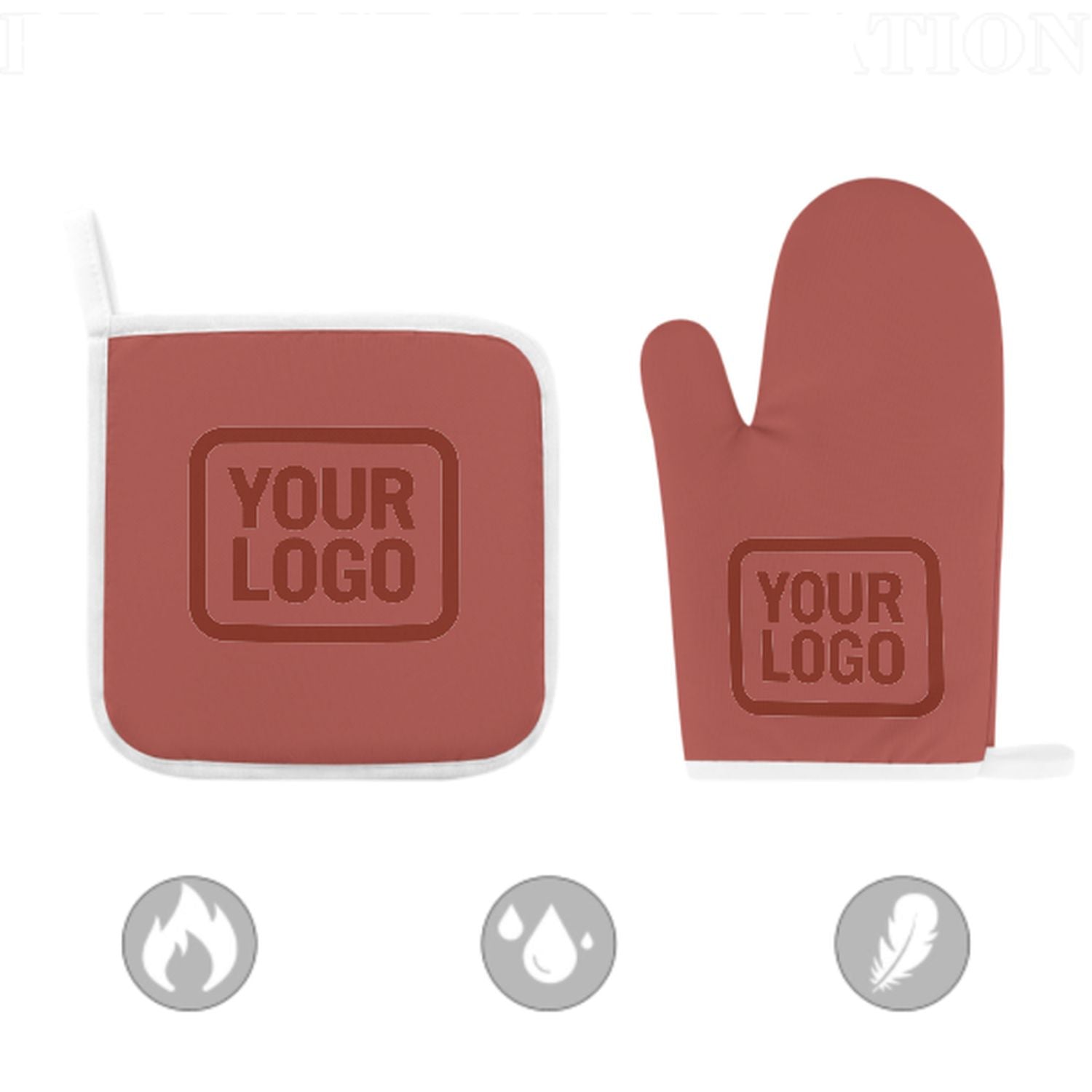 Maßgeschneidertes Kupferrose Korallenrot Topfhandschuh Set – 2-teilig