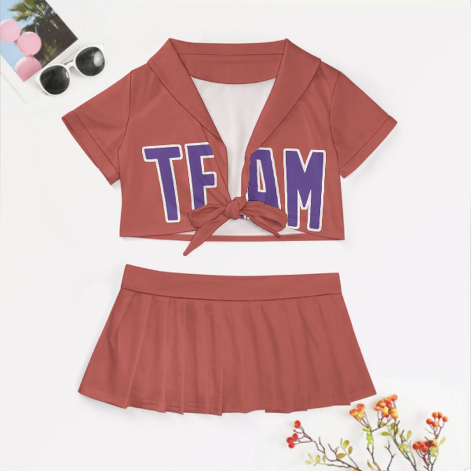 Maßgeschneidertes Kupferrose Lavendel Cheerleader Outfit Set