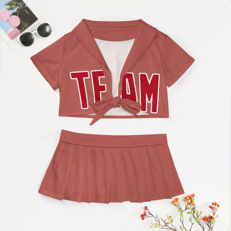 Maßgeschneidertes Kupferrose Rot Cheerleader Outfit Set
