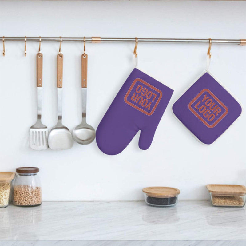 Ein stilvolles, hitzebeständiges 2-teiliges Topfhandschuh-Set aus robustem Polyestergewebe, ideal für Sicherheit und Komfort beim Kochen und Backen.