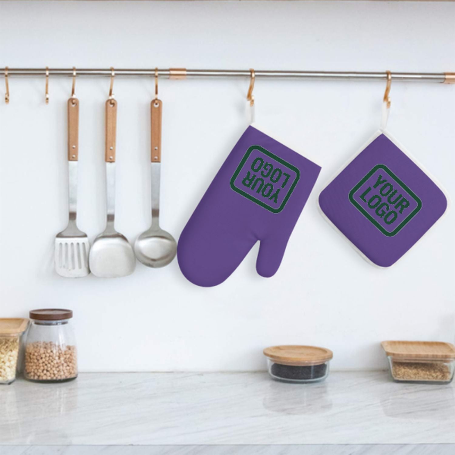 Ein stilvolles, hitzebeständiges 2-teiliges Topfhandschuh-Set aus robustem Polyestergewebe, ideal für Sicherheit und Komfort beim Kochen und Backen.