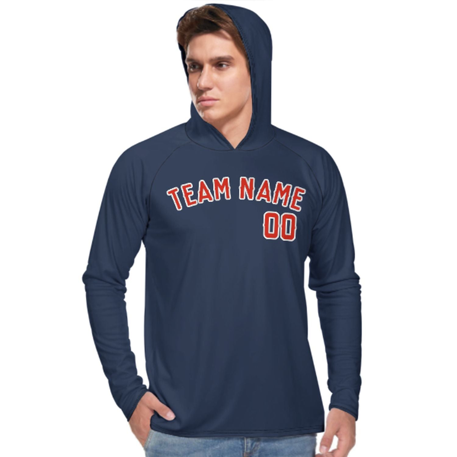 Maßgeschneidertes Marineblau Orangerot UV-Hoodie