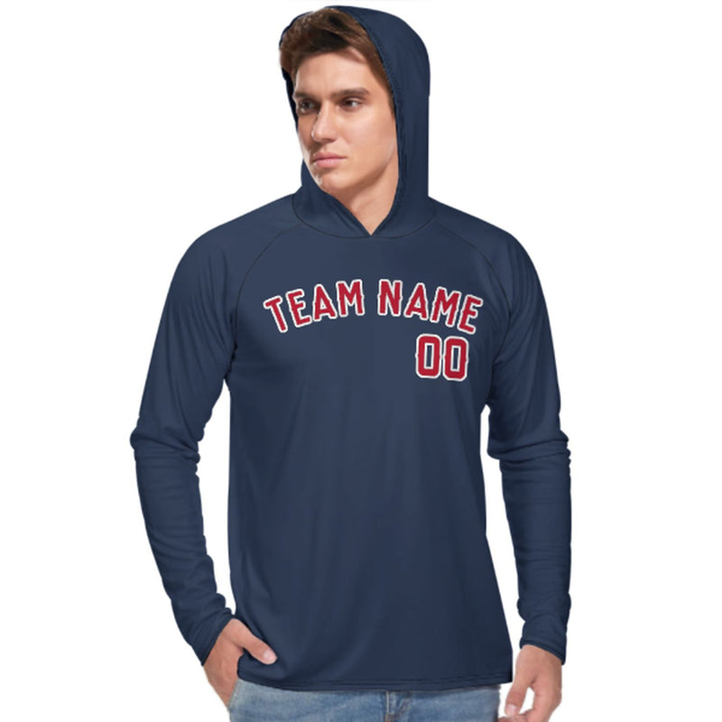 Maßgeschneidertes Marineblau Rot UV-Hoodie