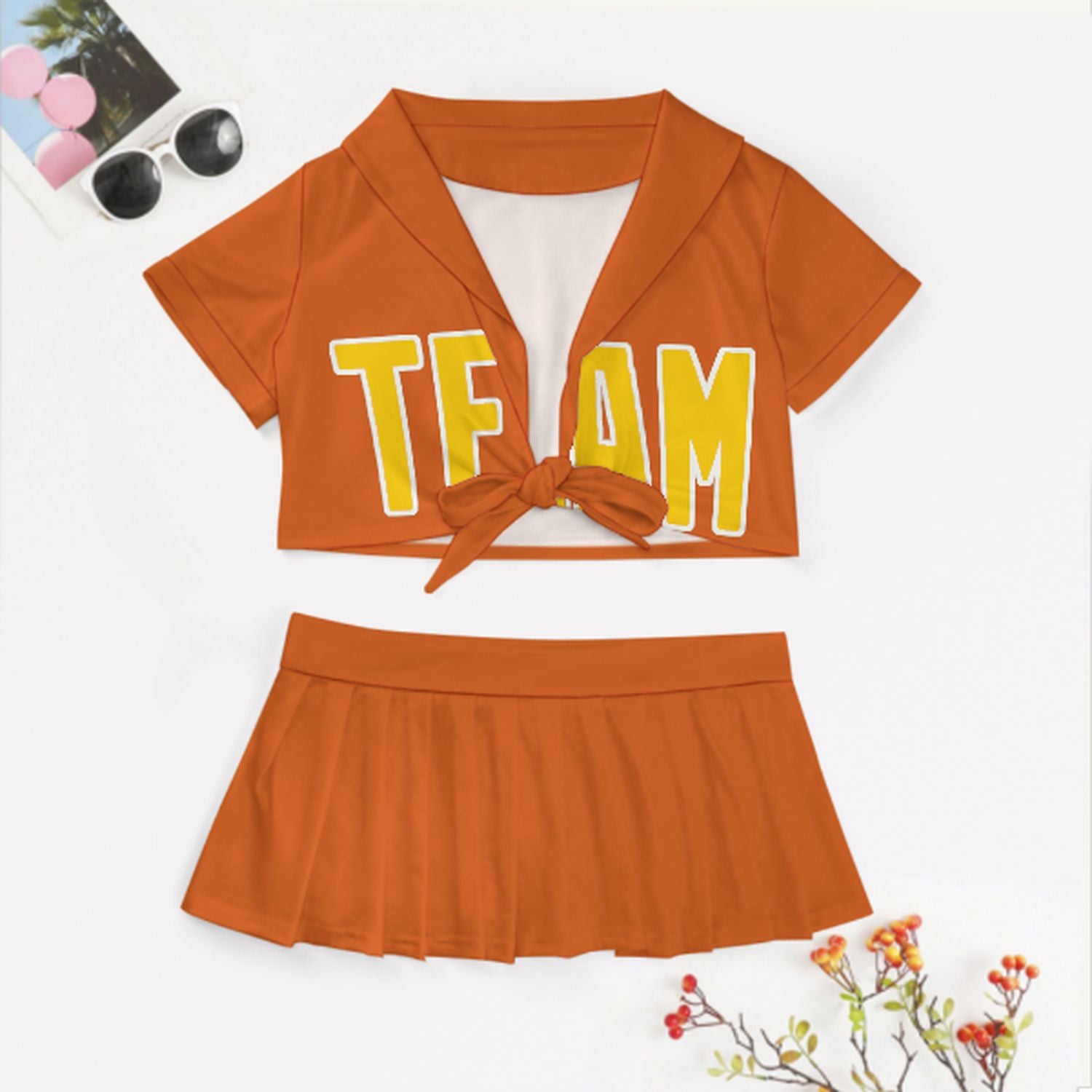 Maßgeschneidertes Orange Gold Cheerleader Outfit Set