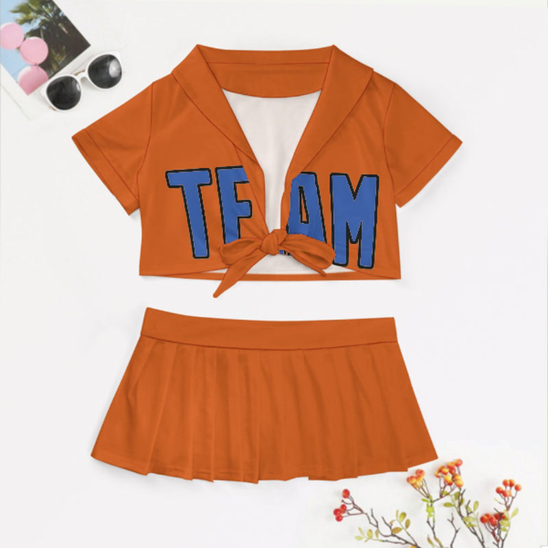 Maßgeschneidertes Orange Himmelblau Cheerleader Outfit Set