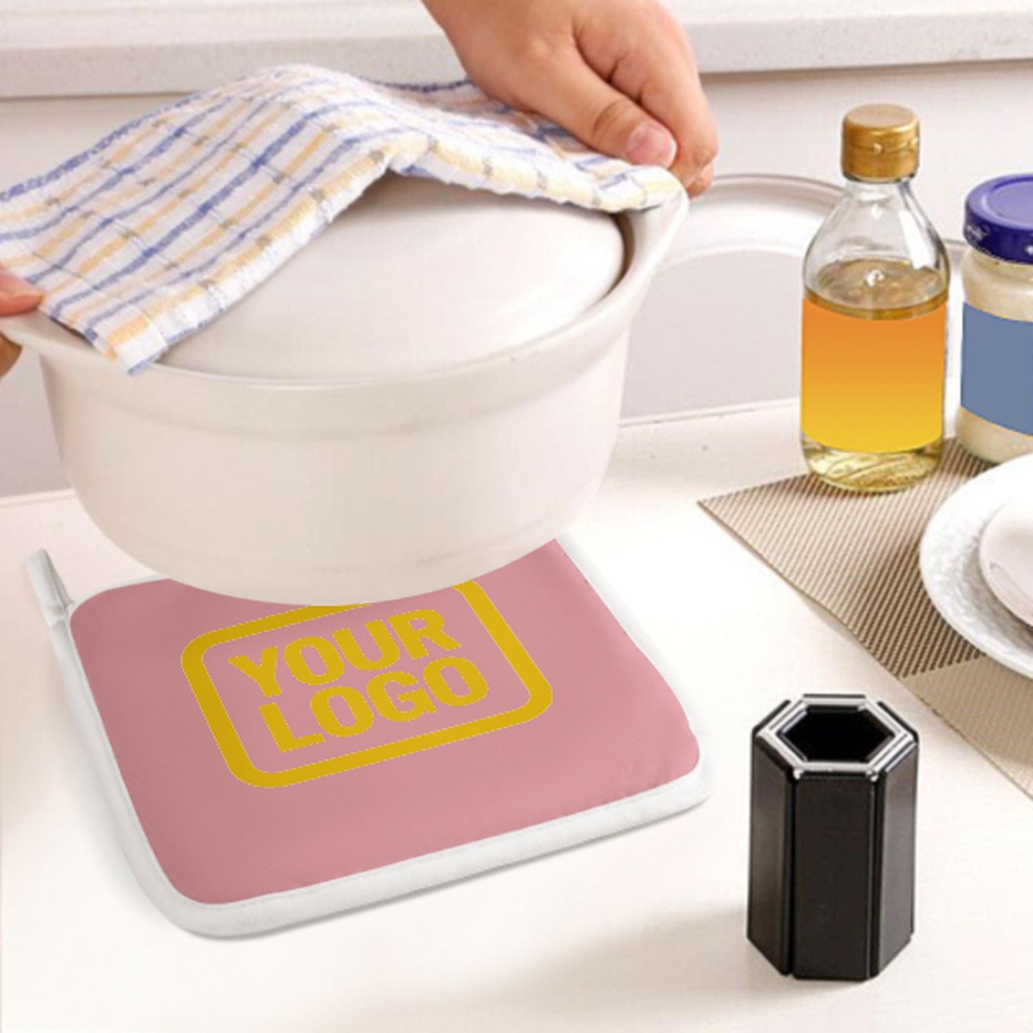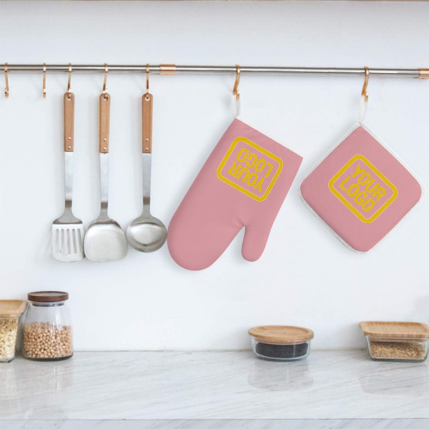 Maßgeschneidertes Rosa Gold Topfhandschuh Set – 2-teilig