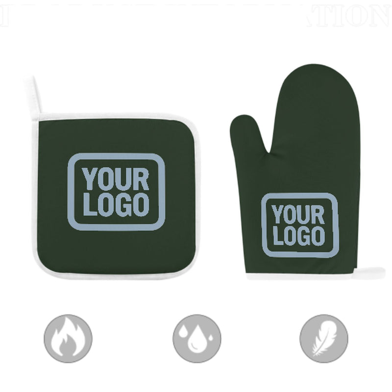 Ein stilvolles, hitzebeständiges 2-teiliges Topfhandschuh-Set aus robustem Polyestergewebe, ideal für Sicherheit und Komfort beim Kochen und Backen.