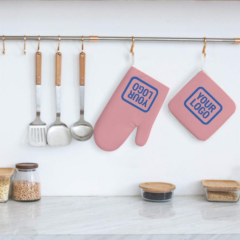 Ein stilvolles, hitzebeständiges 2-teiliges Topfhandschuh-Set aus robustem Polyestergewebe, ideal für Sicherheit und Komfort beim Kochen und Backen.