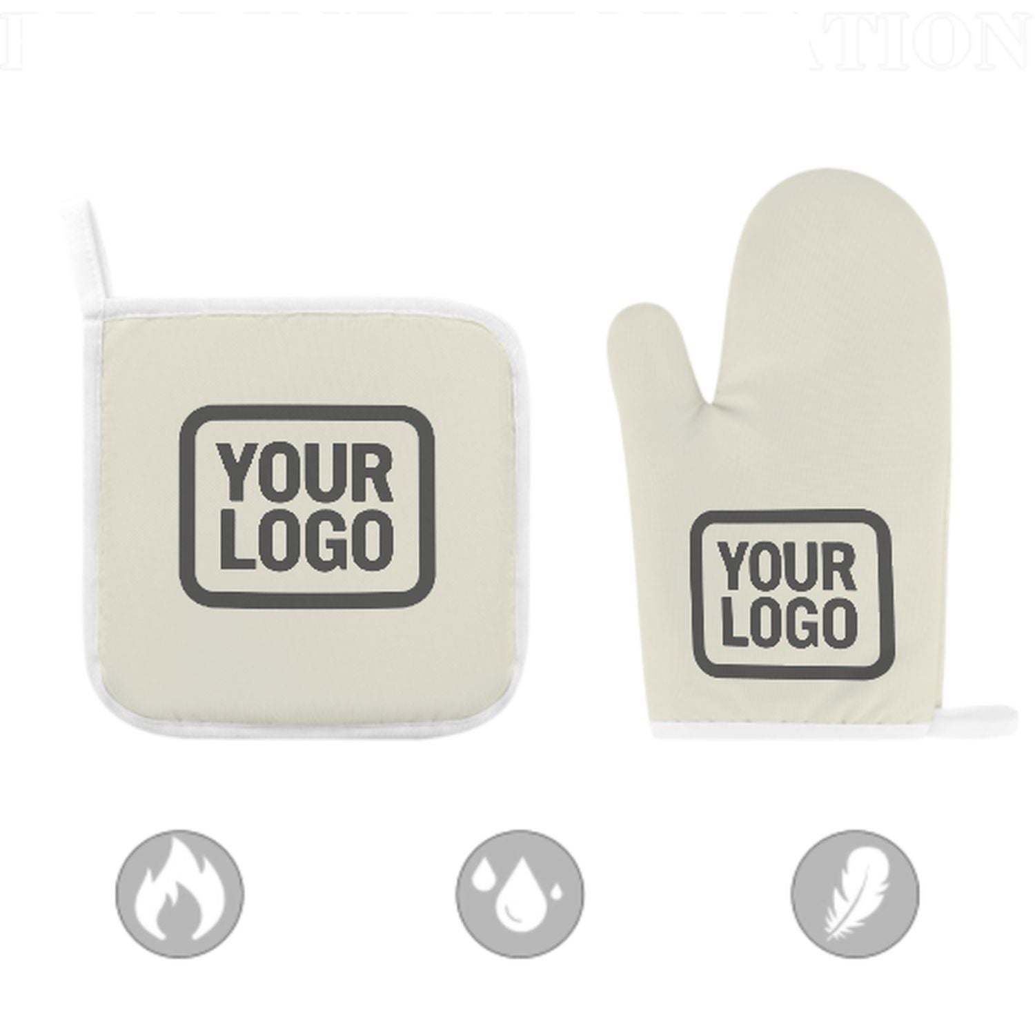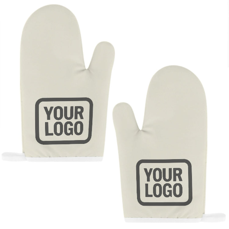 Ett snyggt, värmebeständigt set med ugnsvantar i två delar tillverkat av slitstarkt polyestertyg, perfekt för säkerhet och komfort vid matlagning och bakning.