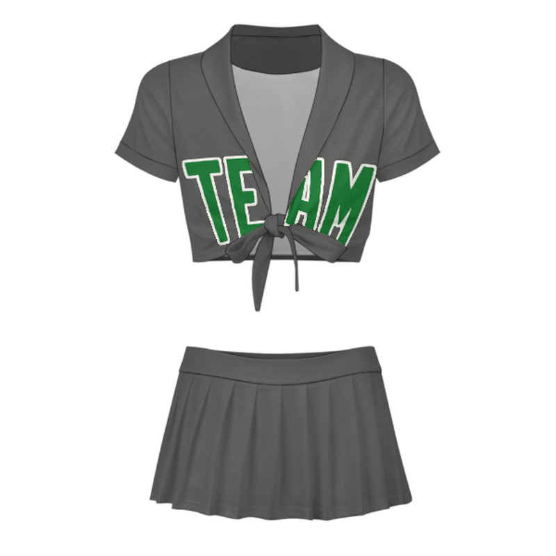 Skräddarsydd mörkgrå smaragdgrön cheerleader outfit set