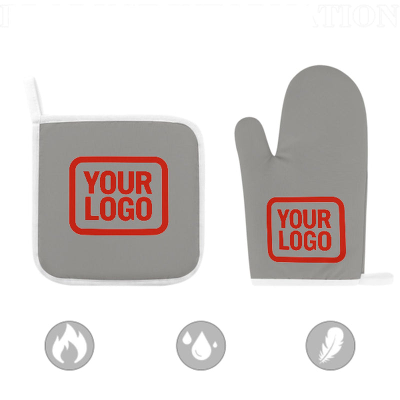 Ett snyggt, värmebeständigt set med ugnsvantar i två delar tillverkat av slitstarkt polyestertyg, perfekt för säkerhet och komfort vid matlagning och bakning.