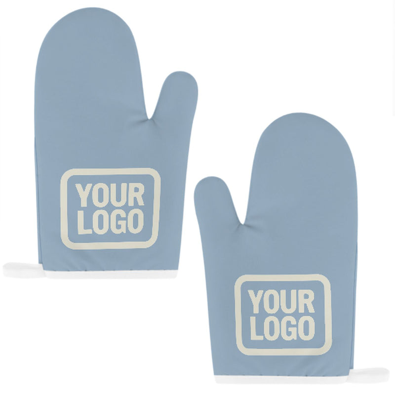Ett snyggt, värmebeständigt set med ugnsvantar i två delar tillverkat av slitstarkt polyestertyg, perfekt för säkerhet och komfort vid matlagning och bakning.