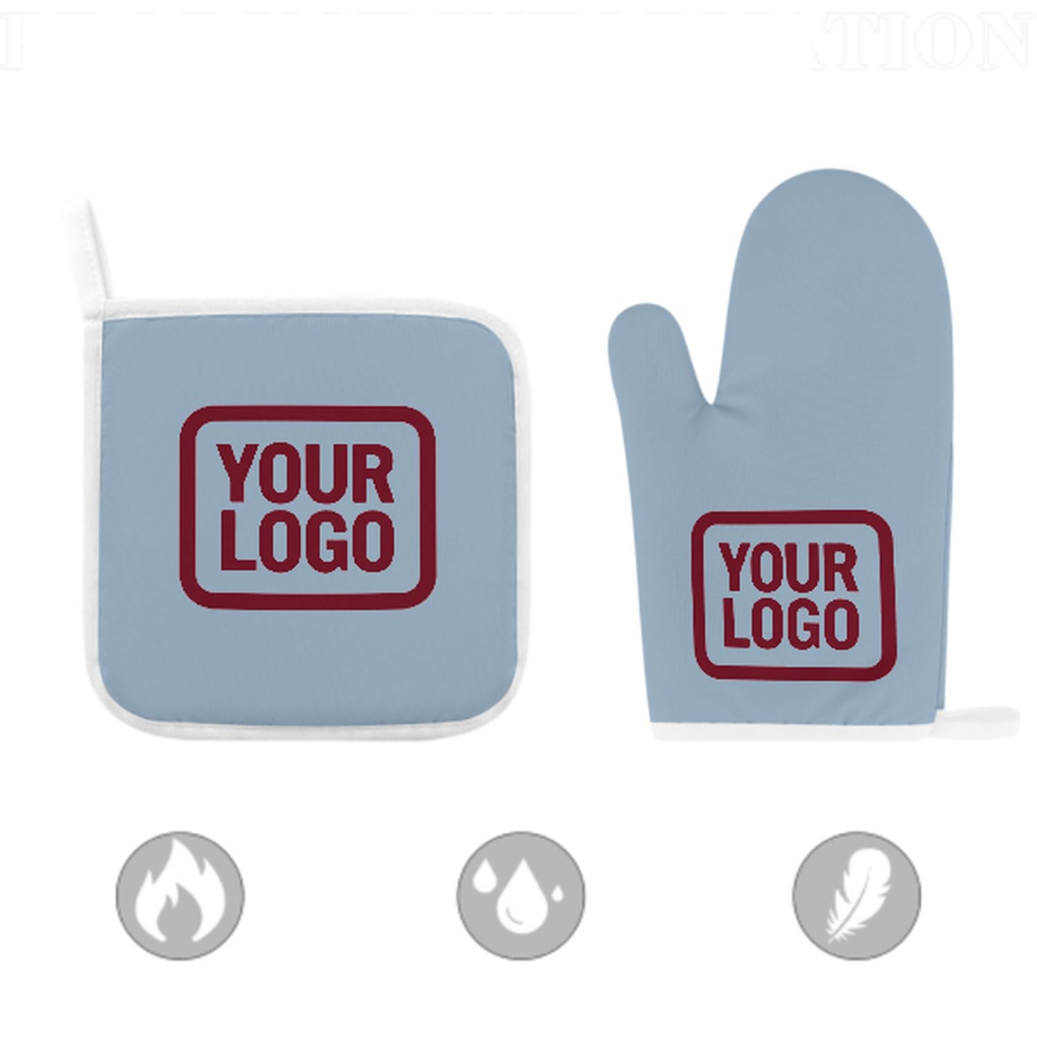Ett snyggt, värmebeständigt set med ugnsvantar i två delar tillverkat av slitstarkt polyestertyg, perfekt för säkerhet och komfort vid matlagning och bakning.