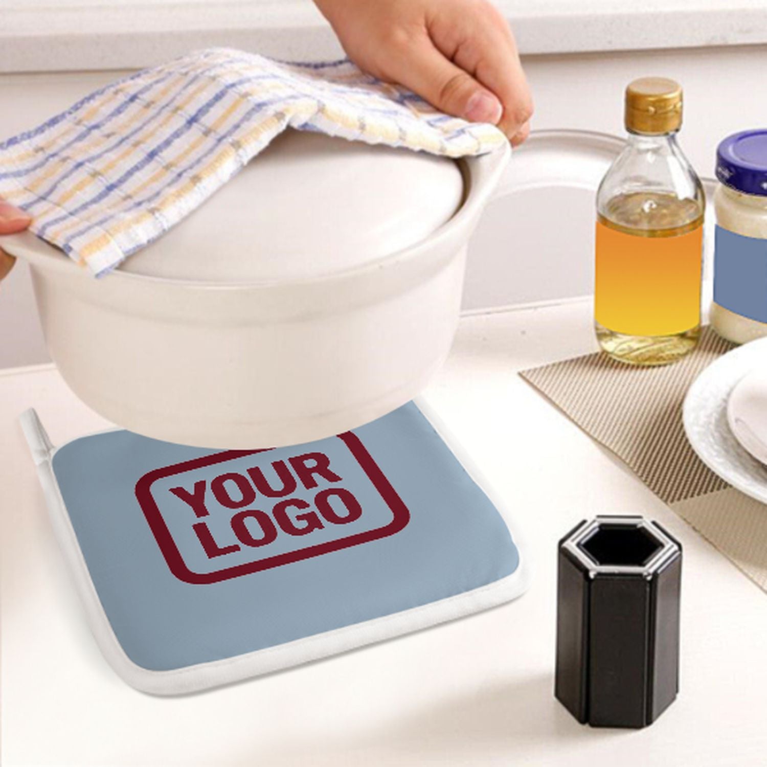 • Hitzeschutz: Verdickte Naturfaser-Isolierung schützt sicher vor heißen Töpfen und Backformen.