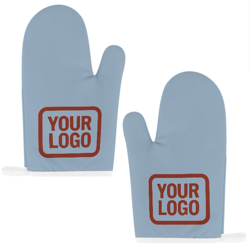 Ett snyggt, värmebeständigt set med ugnsvantar i två delar tillverkat av slitstarkt polyestertyg, perfekt för säkerhet och komfort vid matlagning och bakning.