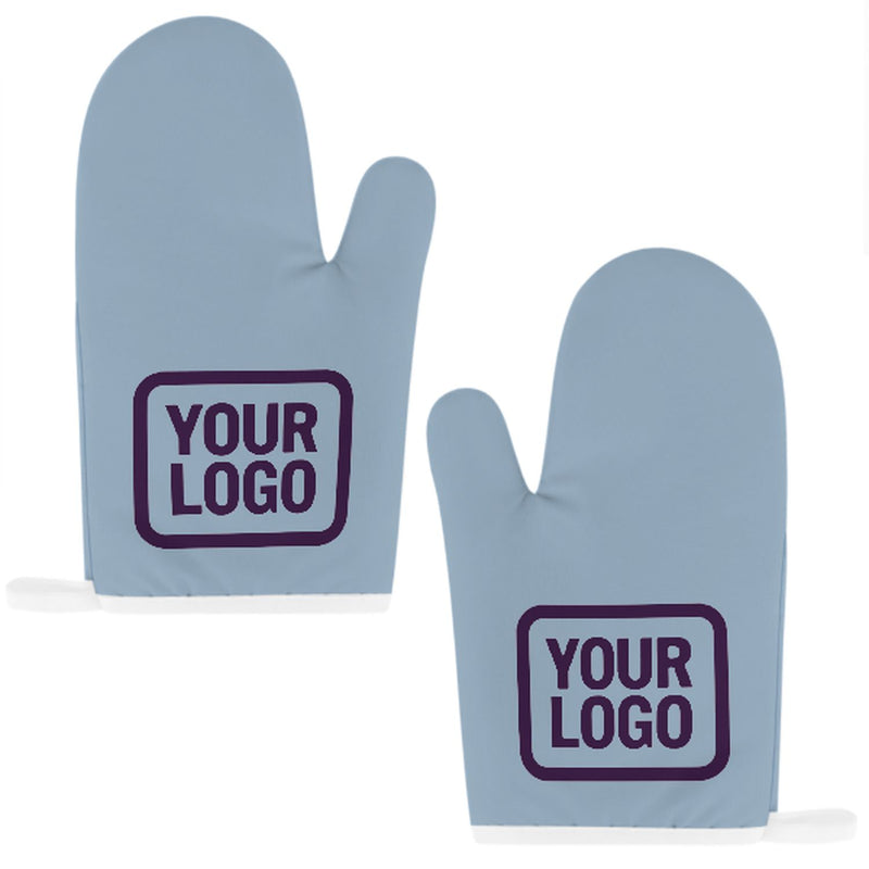 Ett snyggt, värmebeständigt set med ugnsvantar i två delar tillverkat av slitstarkt polyestertyg, perfekt för säkerhet och komfort vid matlagning och bakning.