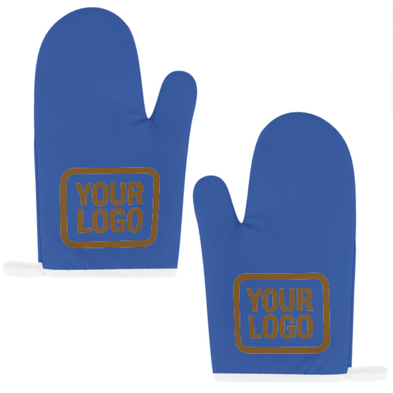 Ett snyggt, värmebeständigt set med ugnsvantar i två delar tillverkat av slitstarkt polyestertyg, perfekt för säkerhet och komfort vid matlagning och bakning.