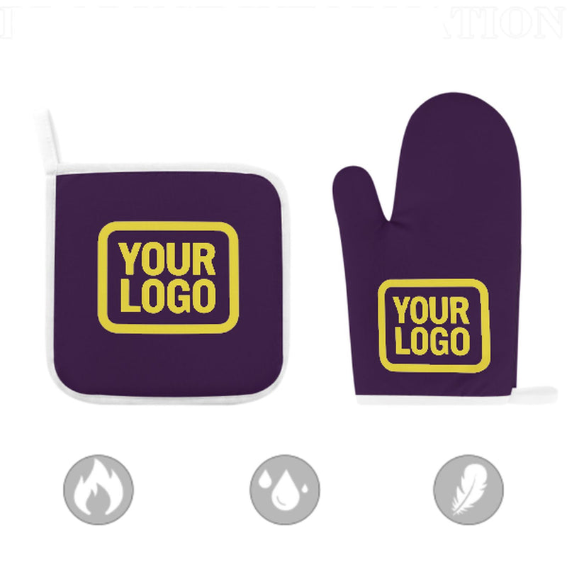 Ett snyggt, värmebeständigt set med ugnsvantar i två delar tillverkat av slitstarkt polyestertyg, perfekt för säkerhet och komfort vid matlagning och bakning.