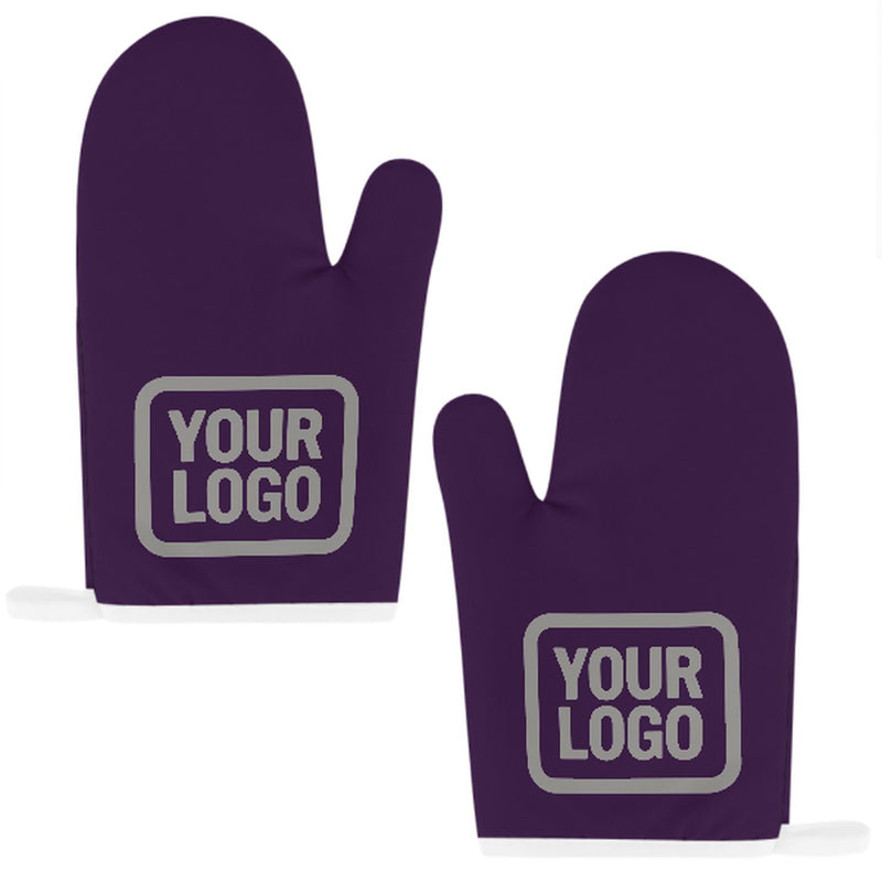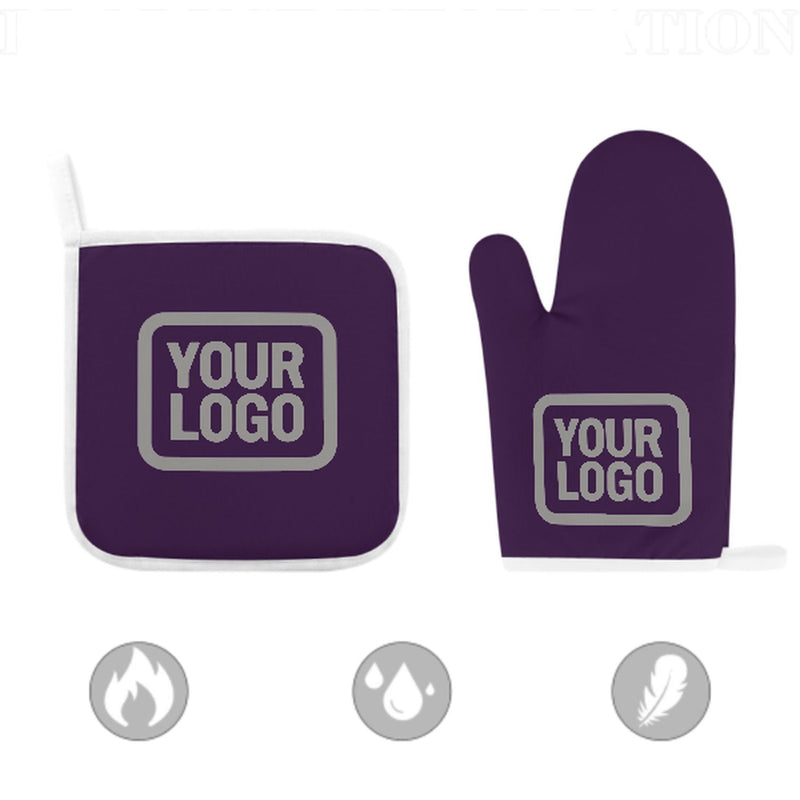 Ett snyggt, värmebeständigt set med ugnsvantar i två delar tillverkat av slitstarkt polyestertyg, perfekt för säkerhet och komfort vid matlagning och bakning.