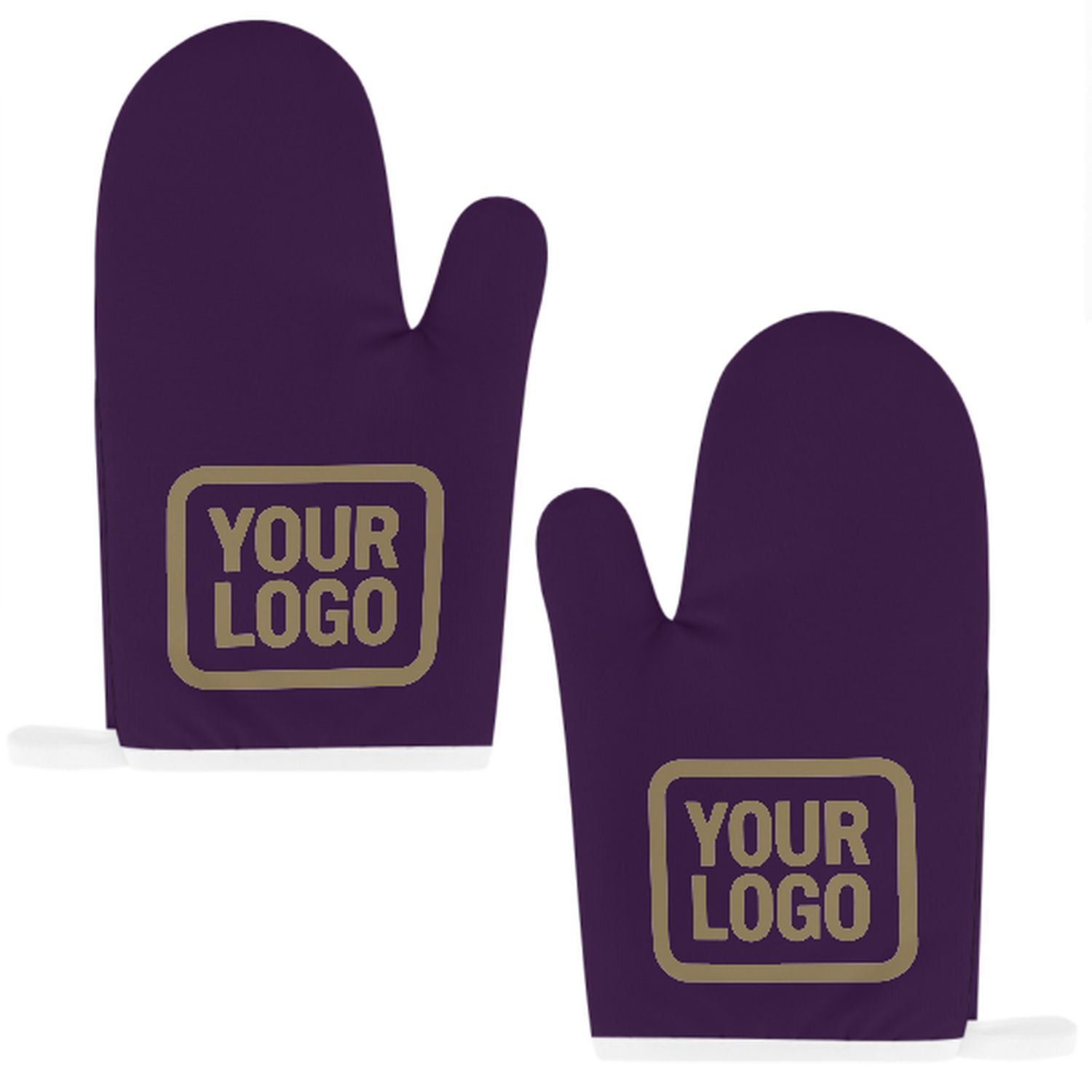 Ett snyggt, värmebeständigt set med ugnsvantar i två delar tillverkat av slitstarkt polyestertyg, perfekt för säkerhet och komfort vid matlagning och bakning.