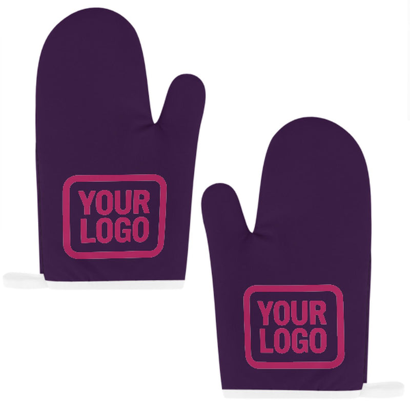 Ett snyggt, värmebeständigt set med ugnsvantar i två delar tillverkat av slitstarkt polyestertyg, perfekt för säkerhet och komfort vid matlagning och bakning.