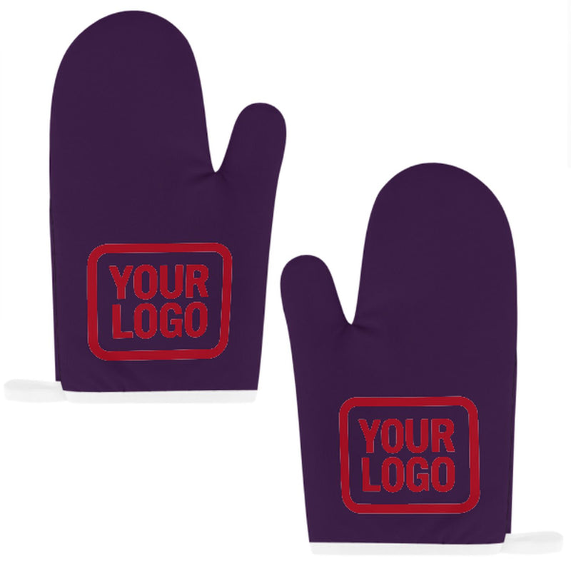 Ett snyggt, värmebeständigt set med ugnsvantar i två delar tillverkat av slitstarkt polyestertyg, perfekt för säkerhet och komfort vid matlagning och bakning.