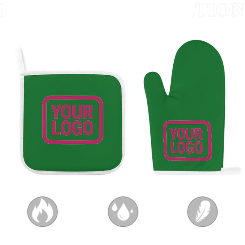 Ett snyggt, värmebeständigt set med ugnsvantar i två delar tillverkat av slitstarkt polyestertyg, perfekt för säkerhet och komfort vid matlagning och bakning.