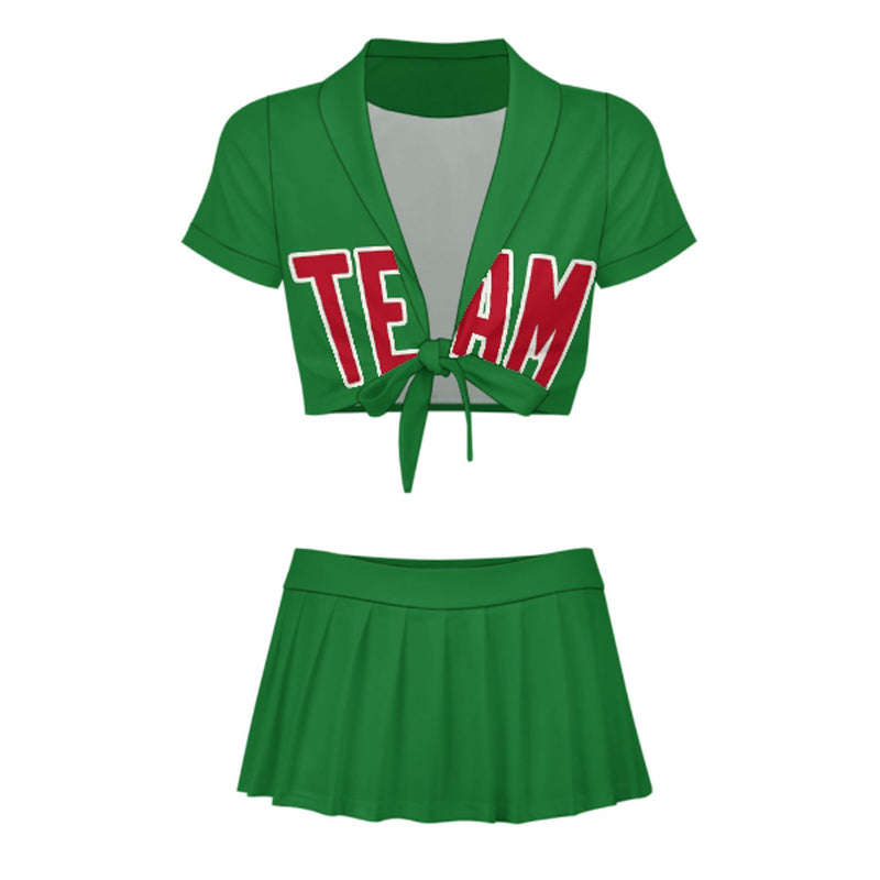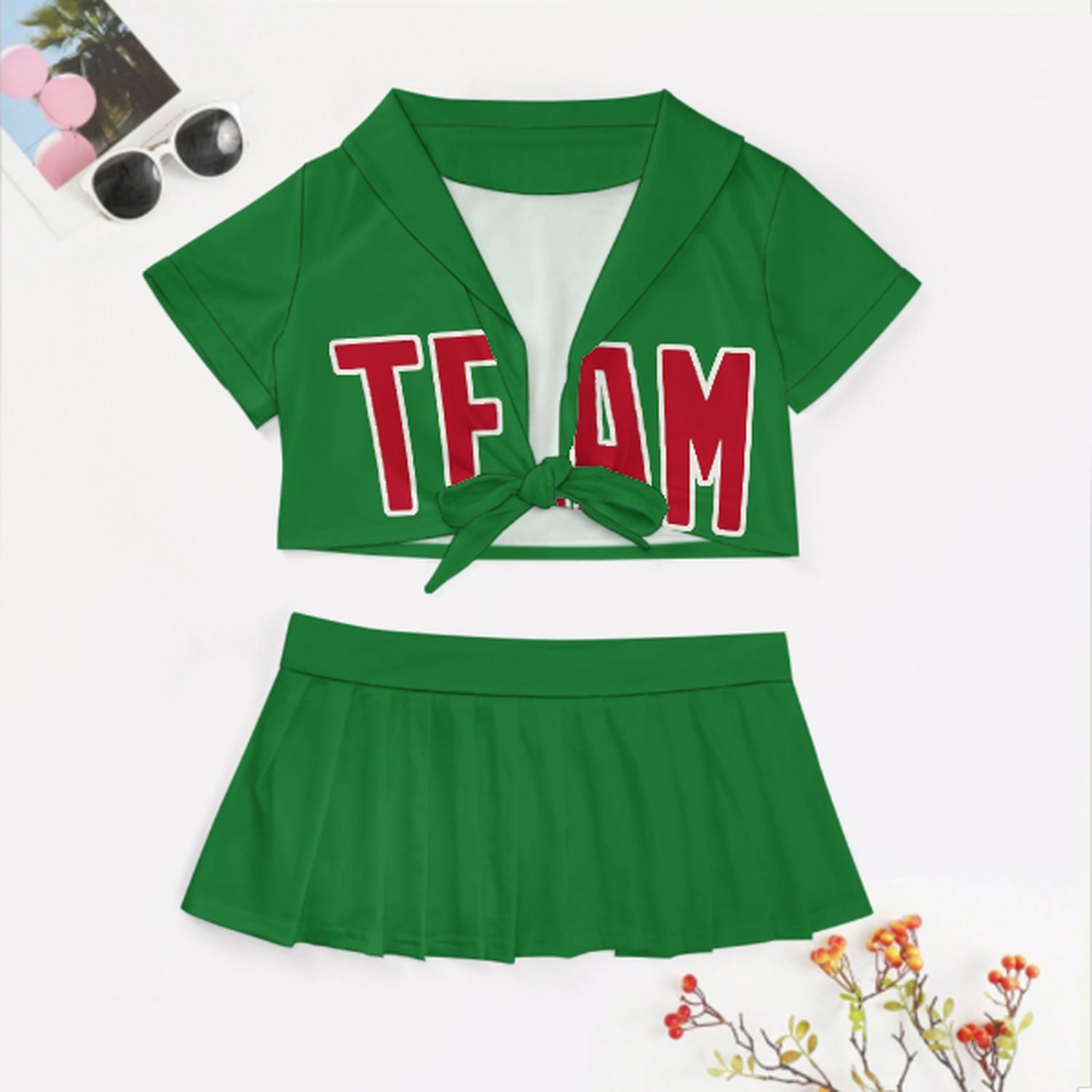 Maßgeschneidertes Smaragdgrün Rot Cheerleader Outfit Set