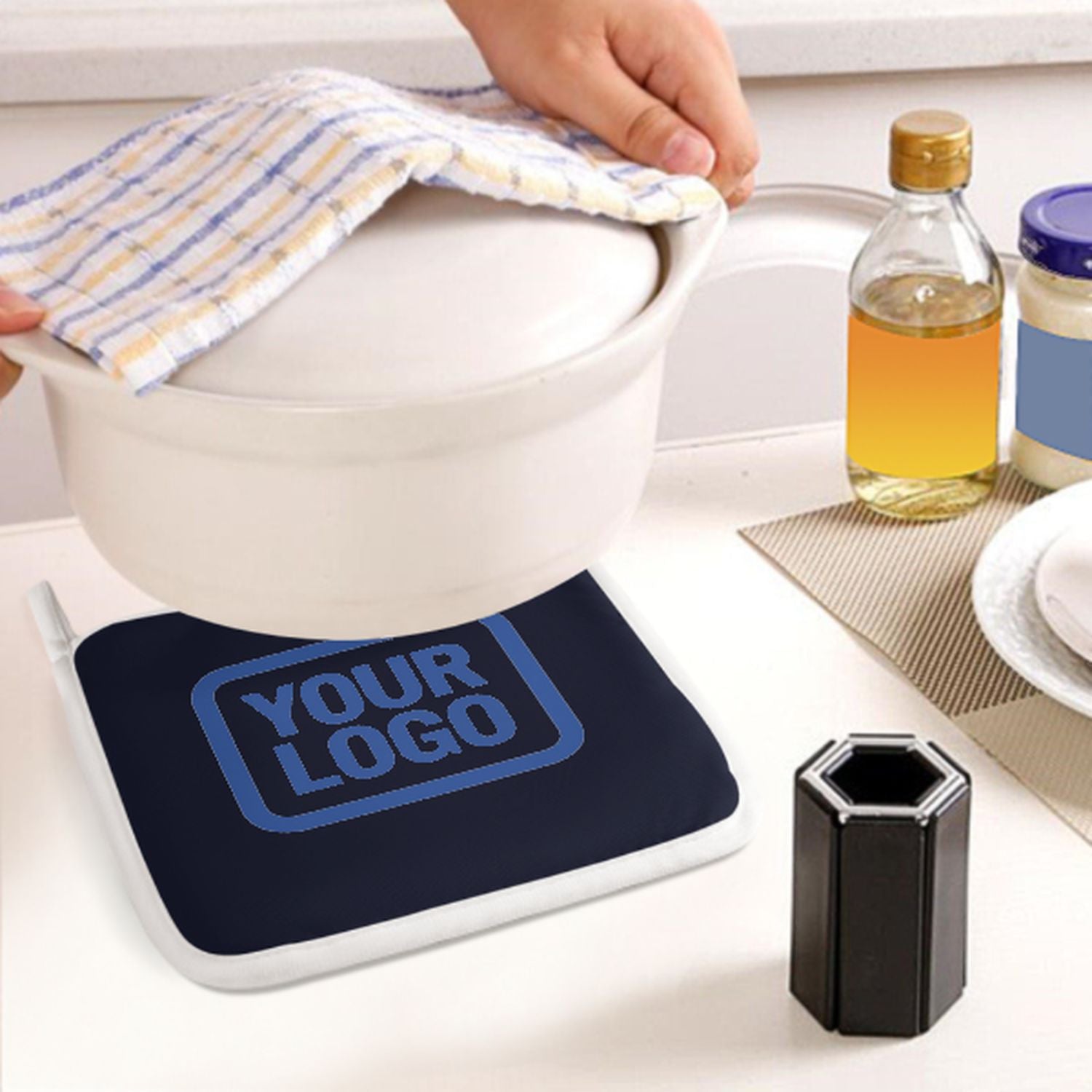 • Hitzeschutz: Verdickte Naturfaser-Isolierung schützt sicher vor heißen Töpfen und Backformen.