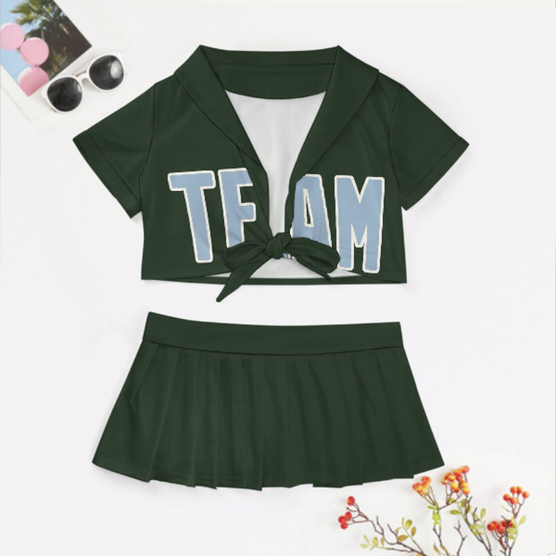 Maßgeschneidertes Tannengrün Hellblau Cheerleader Outfit Set