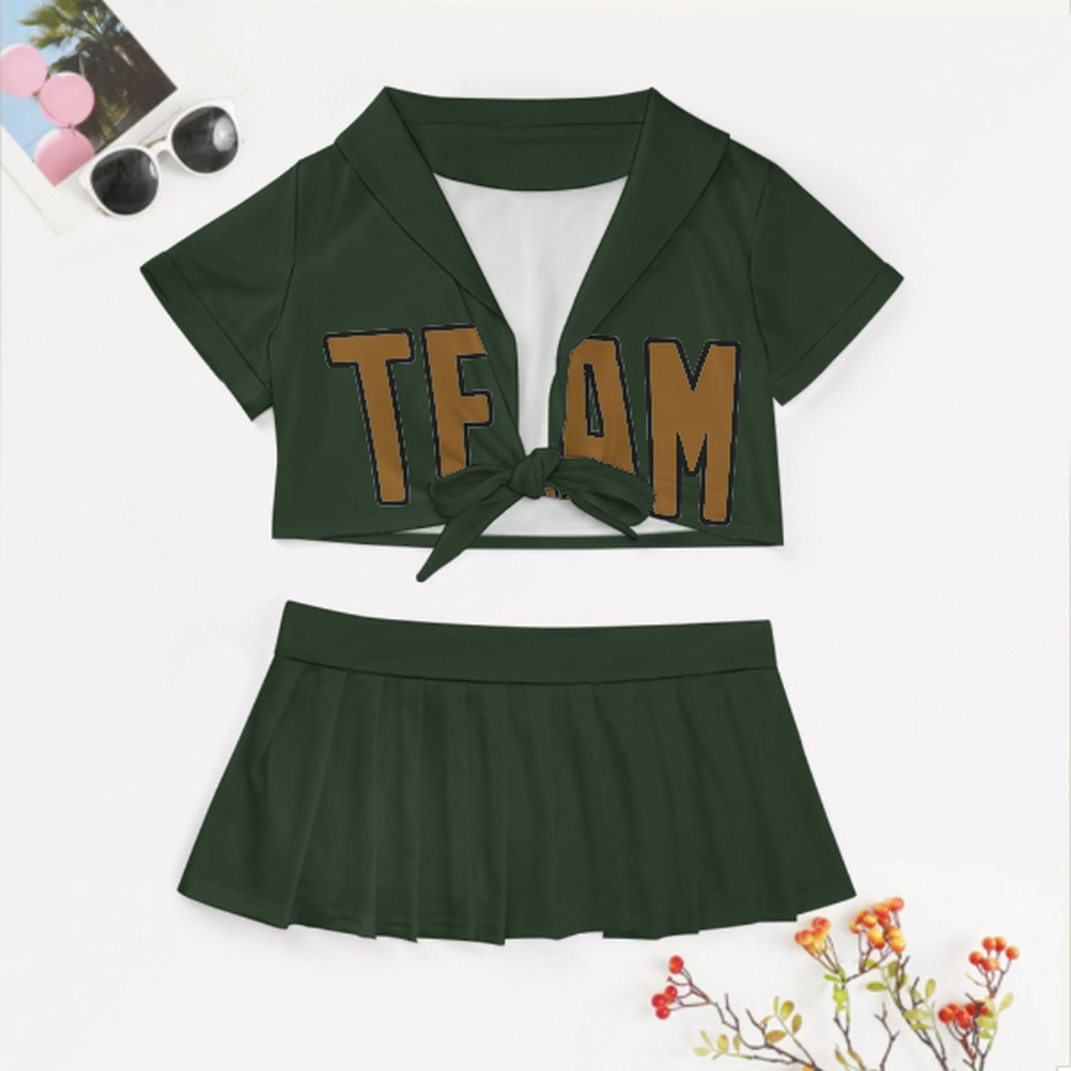 Skräddarsydd gröna khaki cheerleaders outfit set
